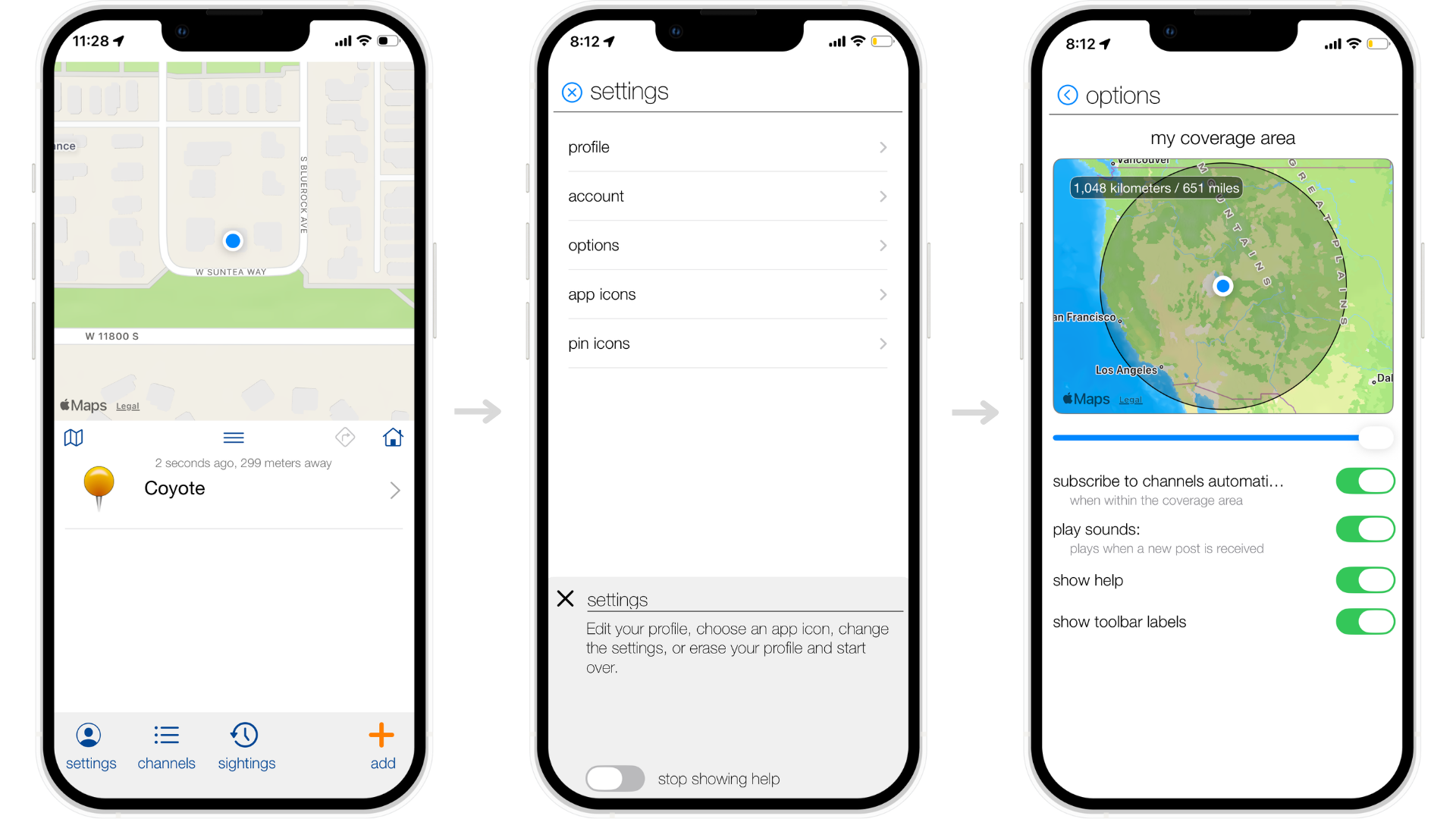 Use the slider to decide when a coyote sighting should notify you.